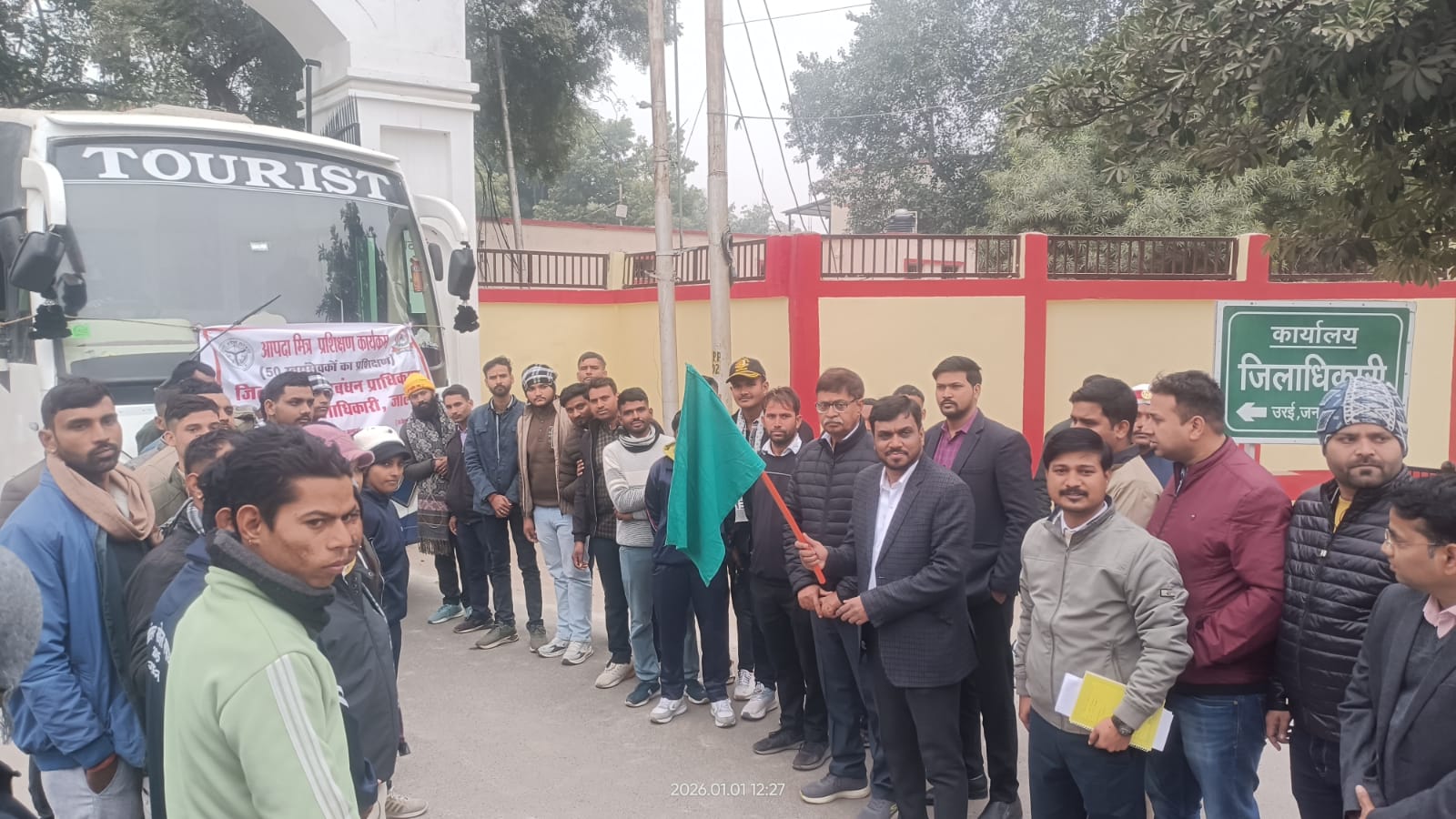 जिलाधिकारी जालौन श्री राजेश कुमार पाण्डेय के निर्देशानुसार आपदा प्रबंधन को सुदृढ़ करने की दिशा में एक महत्वपूर्ण कदम उठाया गया। अपर जिलाधिकारी (वित्त/राजस्व) श्री संजय कुमार द्वारा शुक्रवार को जनपद जालौन से चयनित 40 प्रशिक्षुओं/स्वयंसेवकों को हरी झंडी दिखाकर कलेक्ट्रेट परिसर से राज्य आपदा मोचन बल (एसडीआरएफ) लखनऊ के लिए रवाना किया गया।यह प्रशिक्षण उत्तर प्रदेश राज्य आपदा प्रबंधन प्राधिकरण एवं जिला आपदा प्रबंधन प्राधिकरण के संयुक्त तत्वावधान में संचालित “आपदा मित्र प्रशिक्षण कार्यक्रम” के अंतर्गत आयोजित किया जा रहा है। प्रशिक्षण के दौरान इन आपदा मित्रों को 12 दिवसीय आवासीय प्रशिक्षण प्रदान किया जाएगा, जिसमें बाढ़, भूकंप, आकाशीय विद्युत, डूबने की घटनाएं, अग्निकांड, सर्पदंश सहित विभिन्न प्राकृतिक एवं मानव जनित आपदाओं से बचाव एवं राहत कार्यों की व्यावहारिक जानकारी दी जाएगी। साथ ही आपदा की स्थिति में स्वयं की सुरक्षा करते हुए दूसरों की जान बचाने के कौशल भी सिखाए जाएंगे।इस अवसर पर नगर मजिस्ट्रेट श्री राजेश कुमार वर्मा, जिला आपदा विशेषज्ञ श्री अचल श्रीवास्तव, आपदा लिपिक श्री जयंत तिवारी एवं श्री मोहित श्रीवास्तव सहित अन्य अधिकारी व कर्मचारी कलेक्ट्रेट परिसर में उपस्थित रहे। कार्यक्रम का उद्देश्य जनपद में आपदा के समय त्वरित एवं प्रभावी राहत सुनिश्चित करना