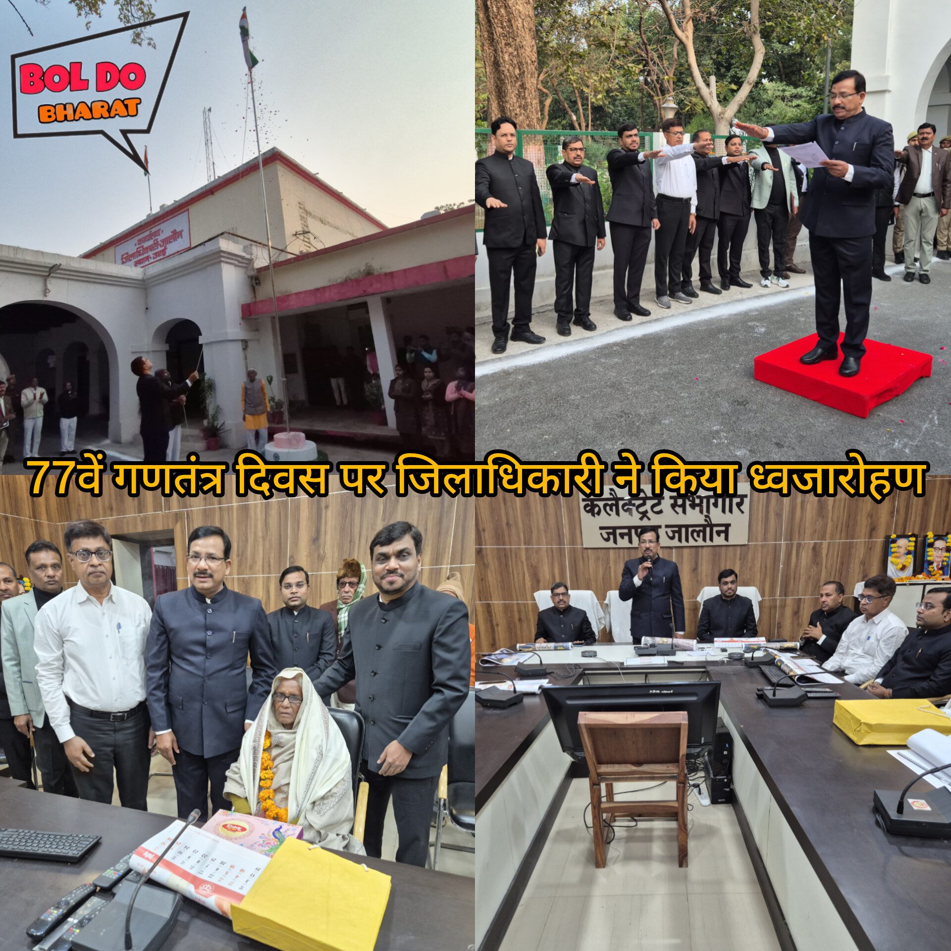 77वें गणतंत्र दिवस के पावन अवसर पर जिलाधिकारी राजेश कुमार पाण्डेय ने अपने कैम्प कार्यालय एवं कलेक्ट्रेट परिसर में विधिवत ध्वजारोहण कर राष्ट्रध्वज को सलामी दी। इस अवसर पर राष्ट्रगान के साथ संविधान में निहित मूल्यों, आदर्शों एवं संकल्पों के प्रति दृढ़ प्रतिबद्धता व्यक्त की गई।जिलाधिकारी ने देश की स्वतंत्रता एवं अखंडता के लिए अपने प्राण न्यौछावर करने वाले अमर शहीदों के बलिदान को स्मरण करते हुए उन्हें भावभीनी श्रद्धांजलि अर्पित की तथा उनके परिजनों को सम्मानित किया। उन्होंने कहा कि वीर स्वतंत्रता सेनानियों के महान संघर्ष से प्राप्त आज़ादी अमूल्य है, जिसकी रक्षा का दायित्व हम सभी एवं आने वाली पीढ़ी पर है। इस अवसर पर केंद्र एवं राज्य सरकार द्वारा संचालित जनकल्याणकारी योजनाओं एवं विकास कार्यों की उपलब्धियों का प्रमुखता से बताया। जिलाधिकारी ने तिरंगे के महत्व, गणतंत्र दिवस के गौरवशाली इतिहास तथा लोकतांत्रिक मूल्यों के प्रति जनमानस को जागरूक किया। उन्होंने कहा कि प्रदेश सरकार प्रशासन में जन सहभागिता, जनता की समस्याओं का त्वरित निराकरण, जनजातीय विकास, पर्यावरण संतुलन, रोजगार सृजन, स्वास्थ्य एवं सुरक्षा, उद्योगों की स्थापना, एक्सप्रेसवे एवं सड़कों का निर्माण, समाज कल्याण, महिला सुरक्षा एवं सशक्तीकरण, पुलिस सुधार, शहरी विकास, खेल एवं शिक्षा को प्रोत्साहन, वृद्धजन कल्याण, किसानों को सिंचाई हेतु निःशुल्क पानी, आय दोगुनी करने के प्रयास तथा एक जनपद–एक उत्पाद जैसी योजनाओं के माध्यम से समग्र विकास की दिशा में निरंतर कार्य कर रही है। उन्होंने कहा कि सरकार सुरक्षा एवं विकास के मार्ग पर चलते हुए कानून व्यवस्था एवं भ्रष्टाचार के प्रति जीरो टॉलरेंस की नीति के साथ आगे बढ़ रही है। जनपद में शांति, सौहार्द एवं सद्भावना का वातावरण सृजित करने हेतु जनमानस की अधिकतम सहभागिता सुनिश्चित की जा रही है।अपर जिलाधिकारी (वित्त एवं राजस्व) संजय कुमार ने कहा कि गणतंत्र दिवस हमें संविधान की सर्वोच्चता, नागरिक कर्तव्यों और राष्ट्र निर्माण में सहभागिता का संदेश देता है। उन्होंने कहा कि प्रशासन का उद्देश्य योजनाओं को अंतिम व्यक्ति तक पहुंचाना है, ताकि समाज के प्रत्येक वर्ग को विकास की मुख्यधारा से जोड़ा जा सके। उन्होंने नागरिकों से लोकतांत्रिक मूल्यों को आत्मसात करने, कानून का पालन करने तथा राष्ट्रहित में सक्रिय भूमिका निभाने का आह्वान किया।इस अवसर पर अपर जिलाधिकारी नमामि गंगे प्रेमचंद मौर्य, अपर जिलाधिकारी न्यायिक योगेंद्र सिंह, नगर मजिस्ट्रेट राजेश कुमार वर्मा, वरिष्ठ कोषाधिकारी अवनीश सिंह आदि अधिकारियों, कर्मचारियों एवं जनसामान्य की उत्साहपूर्ण सहभागिता रही और राष्ट्रभक्ति